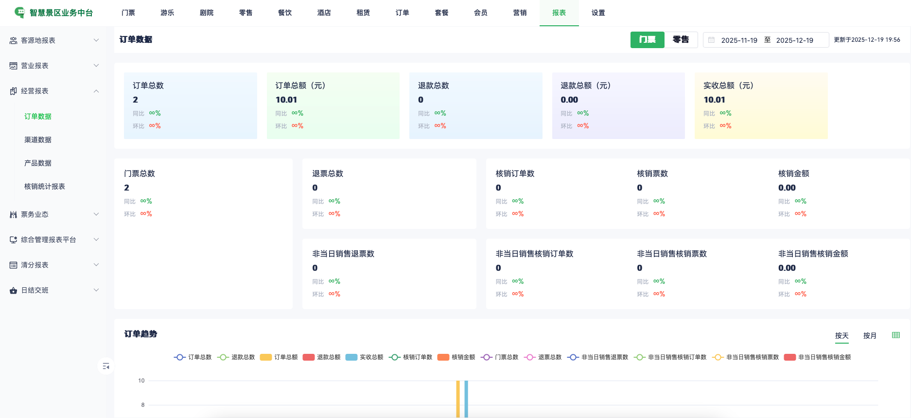 三是实现运营分析。系统实时采集并整合票务数据,提供包括当日入园人数、总销售额、客流趋势变化、游客停留时长等在内的多维度数据分析报表。管理者可据此识别高峰时段、评估营销活动效果,并为资源配置、服务优化和战略决策提供科学依据。
