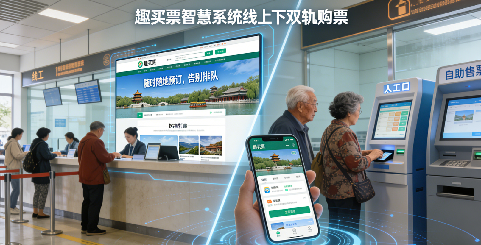 趣买票智慧系统为游客提供更加便捷、灵活的购票方式。借助线上平台,游客可随时随地通过官方网站、移动应用等渠道完成门票预订,有效规避排队等候的困扰,提升出行效率。与此同时,线下人工窗口与自助售票终端依然保留,满足老年游客或不熟悉数字操作人群的现场购票需求,确保服务覆盖更广泛群体。线上线下双轨并行,真正实现无缝衔接的购票体验。