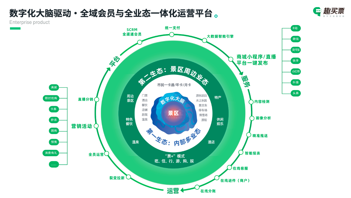 案例参考:长鹿旅游休博园使用趣买票多业态中台,覆盖门票、酒店、餐饮、零售、游乐、温泉6大业态,实现一卡游园区,二次消费提升40%。